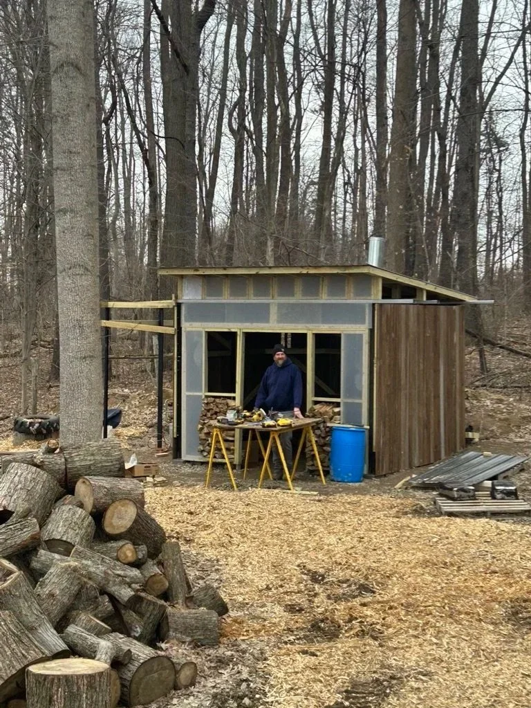 The trees are tapped and Brett is in the last stretch of building a “sugar shack”. A project he has been dreaming about completing for some time now and has been chipping away at in between this winter’s many snow storms. He’s worked as a one man show, building out a lovely building nestled in the woods that houses our sap boiler and will serve as the farm’s wood processing zone. Some (all) members of our crew are suspicious that he’s really just built his dream hermit home in the woods and will one day fully retreat into its confines. It’s a good thing I have a clear view of it from our bedroom window so he will never be too far away from me.